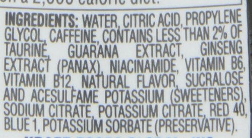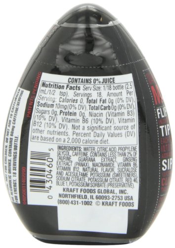 Contains 0g sugar.0% juice. 60mg caffeine/serving for energy