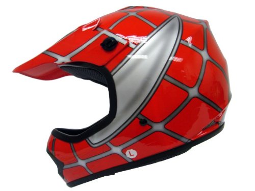 -. Title : TMS Youth Child Kids Red Spider Net Dirt Bike Motocross MX Dirt Bike ATV Off-Road Helmet DOT w/Goggles
