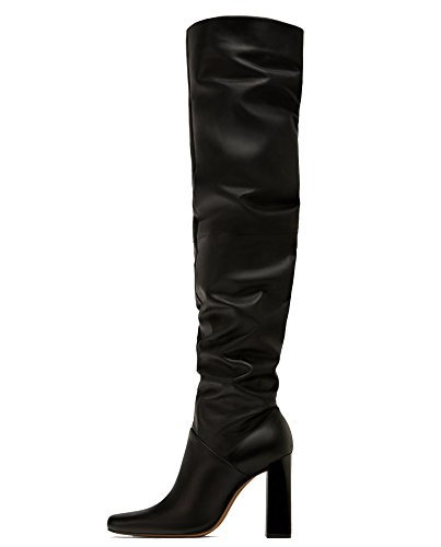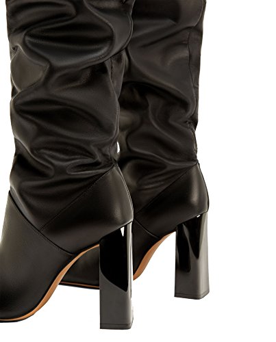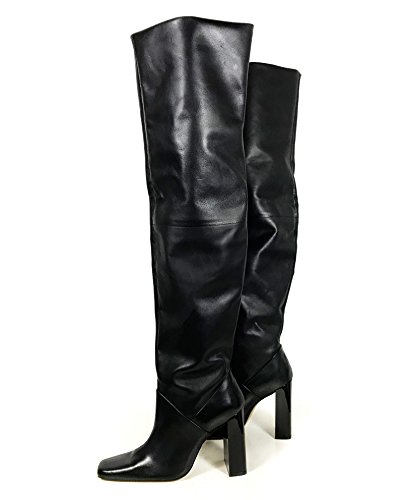 Product Description Black leather high heel over-the-knee boots. Wide leg. Squared toes.Heel height of 11,0 cm. / 4.3 inches Official brand size equivalence for Women Shoes. Size 35 | USA 5 ? ?|?UK 2 Size 36 | USA 6 ? ?|?UK 3? Size 37 | USA 6.5 |?UK 4? Size 38 | USA 7.5 |?UK 5? Size 39 | USA 8 ? ?|?UK 6 Size 40 | USA 9 ? ?|?UK 7? Size 41 | USA 10 ?|?UK 8? Size 42 | USA 11 ?|?UK 9? Size 43 | USA 12 ?|?UK 10 0