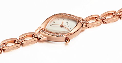 -. Feature : UNIQUE DESIGN: rhombic shape watch featuring white dial, analog display, combine fashion and casual style, along with rhinestone hour marks / LUXURY LOOKING STYLE: the diamonds imbedded among the bracelet, the case and the dial. Rose gold steel case with hardlex rippled glass, effortlessly luxury looking / HIGH COST-EFFECTIVE: precise Japanese quartz movement for accurate time keeping, quality materials detail of the watch, packed with exquisite package, cleaning cloth, two-year battery life, and steel bracelet links / ADJUSTABLE AND NOT EASY TO FADE: pins remove tool attached for bracelet adjusted, gold-plating in whole with quality materials, offered unfading details of the watch which suitable for every occasion with modern women in mind / WATER RESISTANT TO 10 M: In general, these watches will withstand small splashes of water but should not be worn while washing the hands or submerging the hands in water