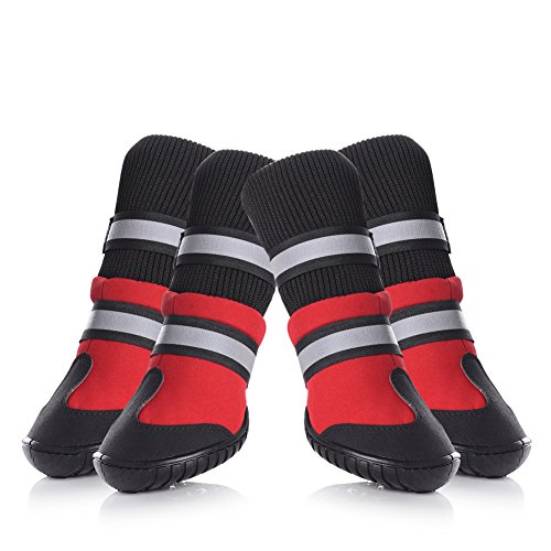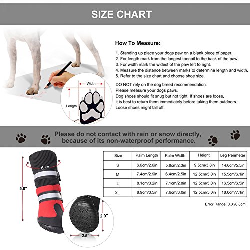 Feature Material: nylon polar fleece lining Size:M Net weight: 8.47oz Color: as picture show Package list: a pair of dog's high-top boots