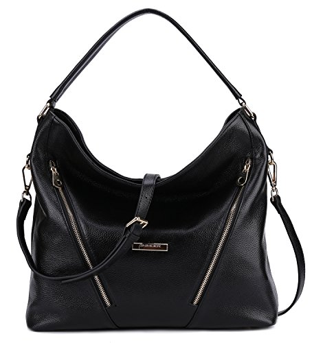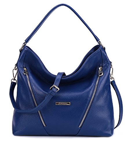 Features: Handmade by professional artisans. With 2 big inner compartment, 1 interlayer zipper bag, 1 interior zipper slot pocket, 2 open pockets for smartphone, credential and keys/lipsticks, 1 behind zippered pocket. 2 small pockets with zipper closure in the front can put your phone and small things. The bottom of bag has four textured metal rivets which is effective for protection against wear.