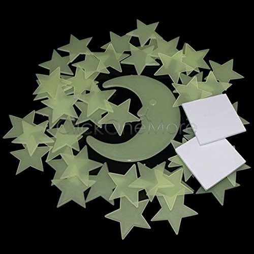 -. Binding : Kitchen -. Brand : Children's Wall Décor -. Color : Clear -. EAN : 0791102800291 -. Feature : Consists of 50 stars and 1 moon. Self-adhesive pads included. / Easy to stick to your ceilings and walls. Create a star studded ceiling. Safe removable and reusable. / Absorb light during the day that enables them to create a lasting warm glow at night when the lights are out. / Can be charged by artificial light, but natural light gives the best performance. / Material: Plastic, Quantity: 50 Sars and 1 Moon, Moon Size: 8 cm, Star Size: 3.5 cm -. Label : Children's Wall Décor -. Manufacturer : Children's Wall Décor -. ProductGroup : Home -. ProductTypeName : HOME -. Publisher : Children's Wall Décor -. Studio : Children's Wall Décor -. Title : 50 Glow In The Dark Star and Moon Shapes for Ceiling Wall Bedroom -. UPC : 791102800291