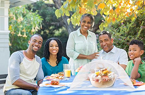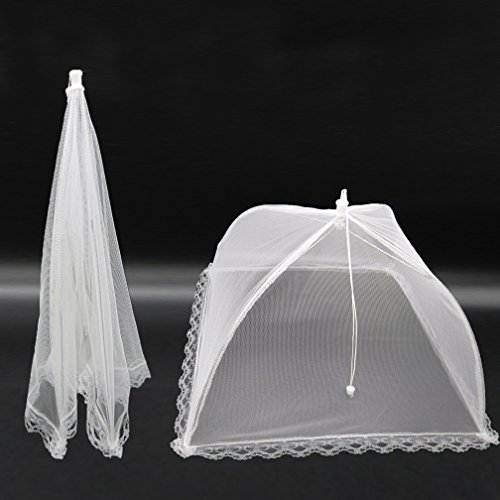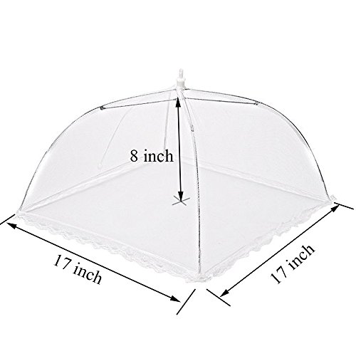 Simple & Functional: Set of 6 Large Pop Up Mesh Food Covers, keep flying insects off your food when entertainning outside.Fine nylon mesh screen and extra lace around the bottom ensure your food and beverages are safe from bugs without affecting the taste