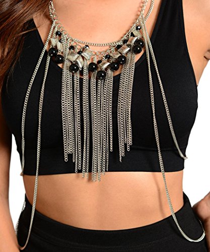 Product DescriptionTassel Necklace Body Chain / AZFJBC042-SBK ? Color : Silver / Black0