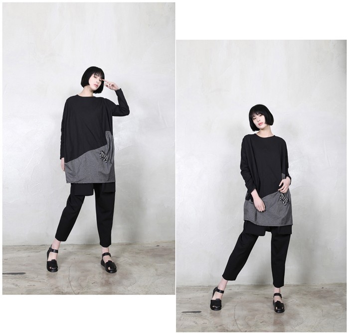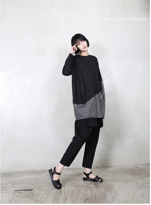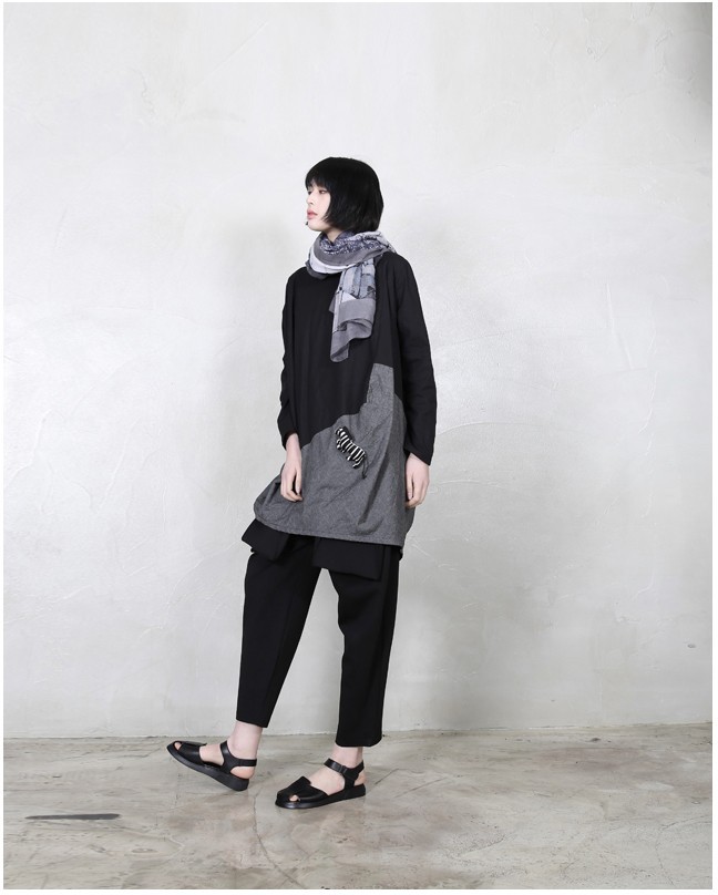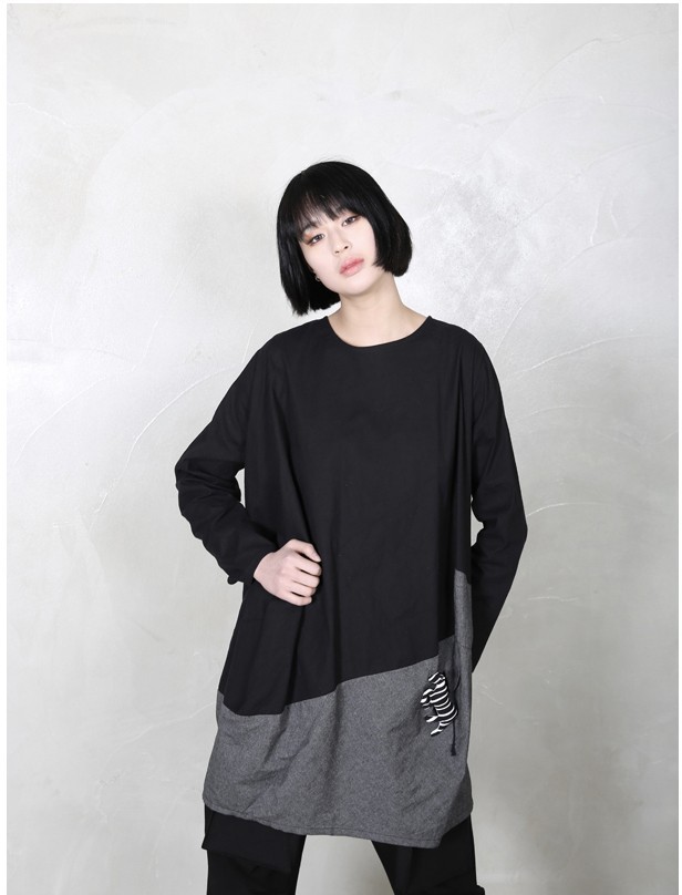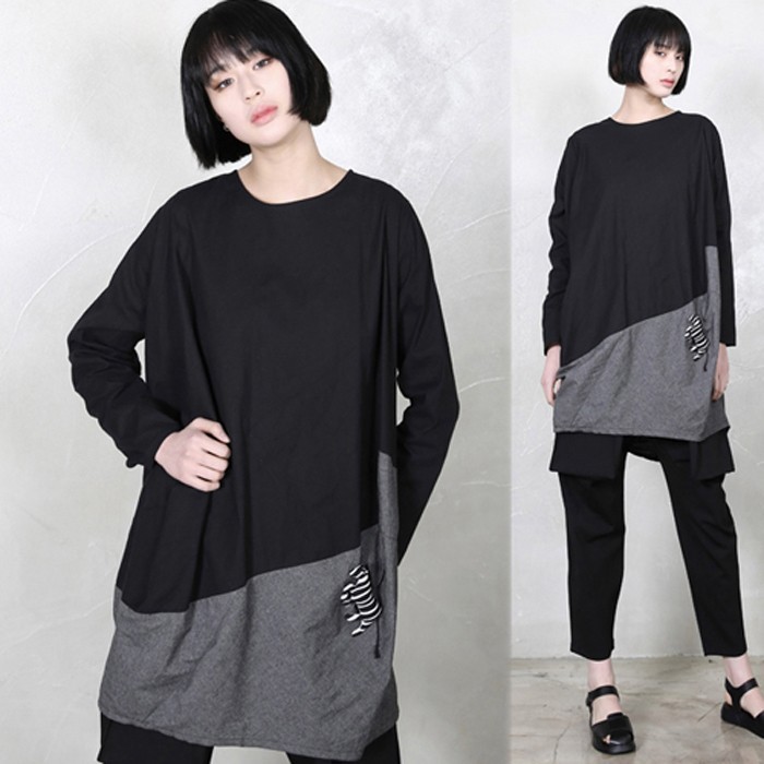 商品名:ワンピース レディース チュニック 長袖 切り替え 秋 冬 2017 モード系 個性的 40代 ファッション