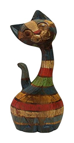 Entrada EN13209 Wooden Cat Figurine, 20" x 6.5" x 2.5", Multicolor