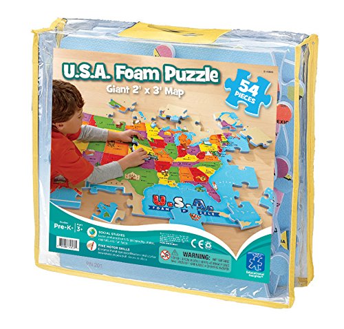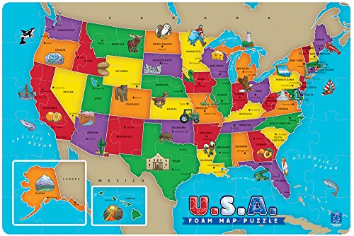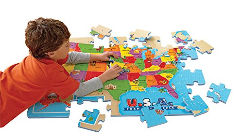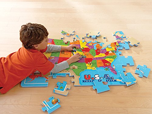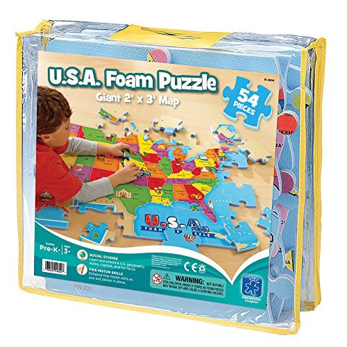 ReleaseDate : 2007-06-01 Studio : Educational Insights Publisher : Educational Insights Binding : Toy Product Description Travel cross-country through this beautiful, giant 2' x 3' puzzle of the United States. Children can explore America's states, capitals, landmarks, animals, and more with hands-on play as they connect the pieces of this colorful, illustrated map. Includes 54 interlocking, water-resistant, and easy-to-clean puzzle pieces. 0