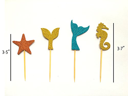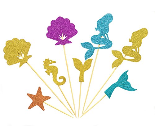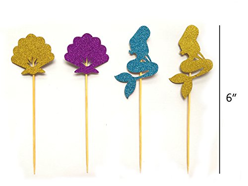 - 36 pieces cupcake picks(includes 8 pcs mermaid, 10 pcs mermaid tail, 8 pcs shell, 5 seahorse, 5 starfish), and have 20 pcs glue