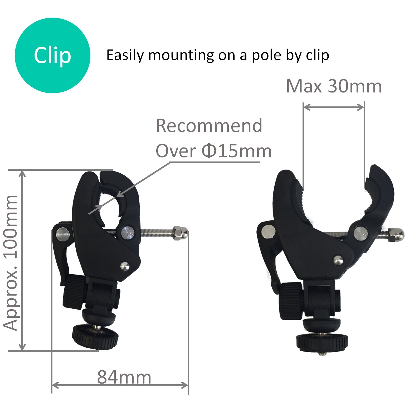 If you use a clip to attach to a pole, a microphone stand, a stroller,