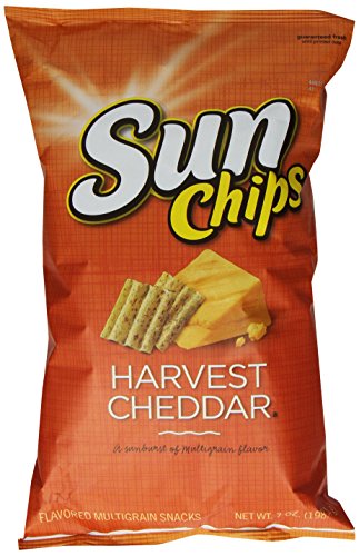 -. Feature : 7.0 oz. bag of SUNCHIPS HARVEST CHEDDAR Flavored WholegrainMultigrain Snacks / Delicious, whole grain snacks flavored with real cheddar cheese / Great snack bag for the pantry / Contains 21g of Whole Grain per 1 oz. serving. Eat 48g or more of whole grains daily