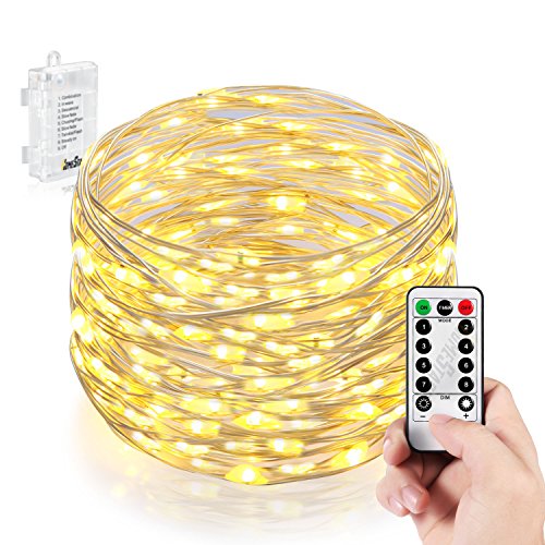 Homestarry Dimmable String Lights PRO 66 LED's, 16-Feet, Flexible Silver Wire Battery Operated, Waterproof Design with Wireless Remote Control, Warm White