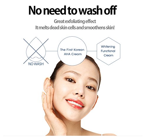 -. Feature : AHA scaling cream with 30 days promise which relieves the stress of problematic skin / Lemon verbena leaf extract, argan tree kernel oil, jojoba seed oil / Dissolve the keratin and sebum blocking the pores to create smooth skin, cream which doesn't need to wash off. / Glycolic acid with the smallest particles among AHA tidy up the skin without damage / Tidy up the skin to take the makeup well by removing ketatin + Moisturizing + improving tone.