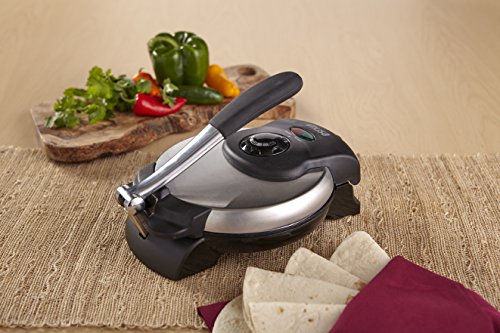 The IMUSA Electric Tortilla & Roti Maker is an invaluable tool that makes perfectly round and delicious tortillas and roti every time. Elevate your next meal with homemade tortillas and you will never go back to store bought. Use it to make burritos, tacos, or crepes for desert! Fill them up with different meats, savory cheeses, or veggies. For a truly mouthwatering breakfast, make a homemade crepe. The press is easy to use. Insert your dough or "masa" and with one press you have a fresh tortilla. Impress your guests with homemade tortillas at your next Mexican-themed dinner.Feature