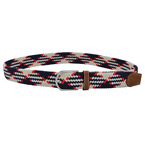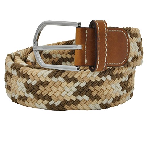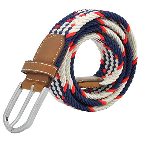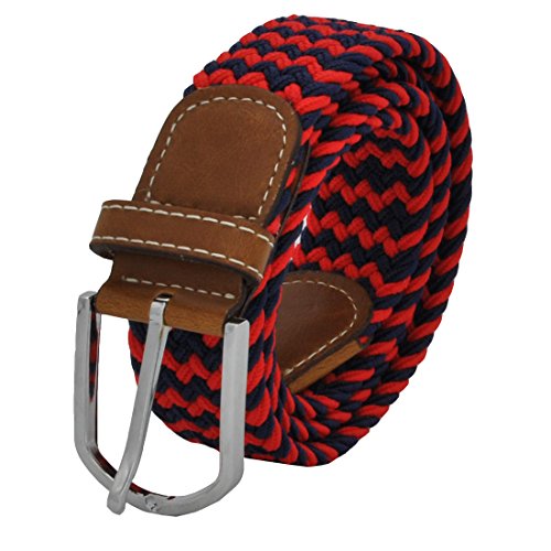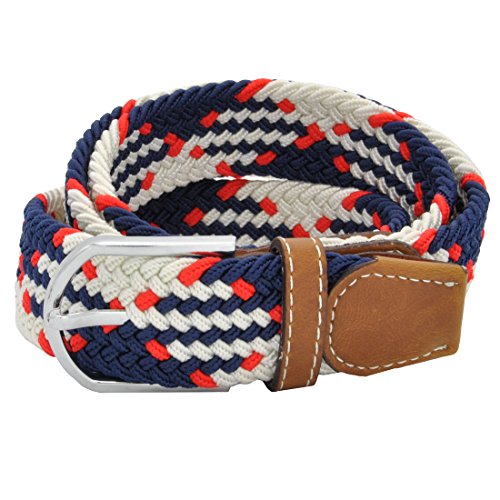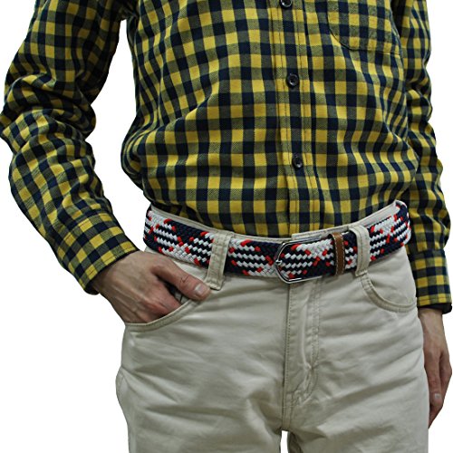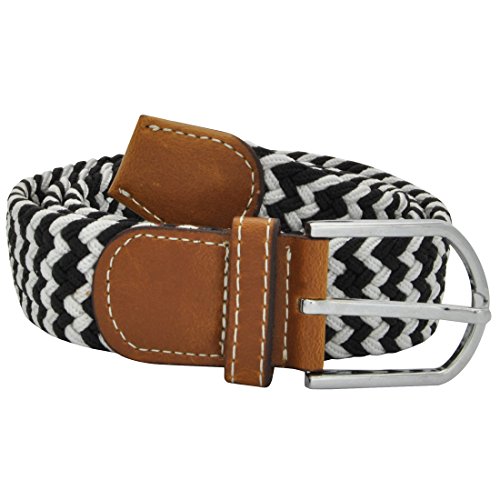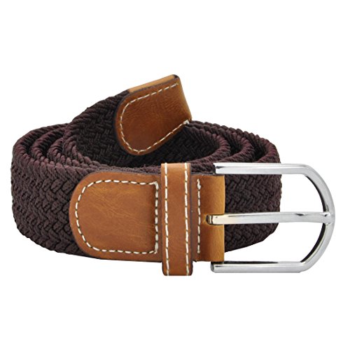 Men Elastic Fabric Woven Stretch Belt Braided Webbed Waistband with Faux Leather *These belts come in a variety of colors and patterns to help you get the perfect match with all your different wardrobe needs.