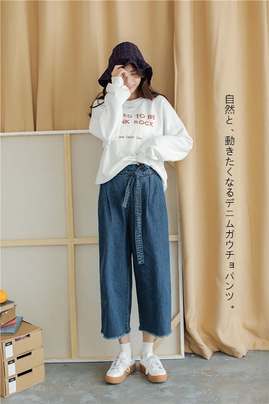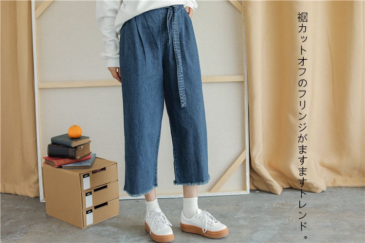 ワイドなシルエットと落ち感がフェミニン!薄手のデニム地を使用したワイドパンツ、スカーチョが入荷しました♪共生地のウエストベルトはリボンに結んだり、取外しもOKの2wayタイプ。 薄手でクタっとした風合いと落ち感があり、 着心地のよい1枚です♪製品番号:8002単位: CM (平置き採寸)素材: デニムスタイル: ワイドパンツサイズ: S / M / L色:ネイビー彈性: 伸縮性なし----------------------★サイズ: S 総丈:89cm ウエスト:60-78cm ヒップ:114cm★サイズ: M 総丈:90cm ウエスト:63-81cm ヒップ:117cm ★サイズ: L 総丈:91cm ウエスト:66-84cm ヒップ:120cm サイズ表の実寸法は商品によって2cm程度の誤差がある場合がございます。