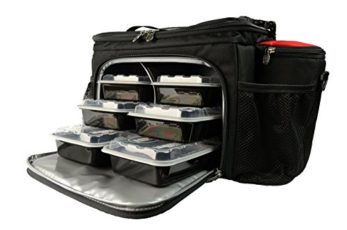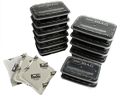 STACKABLE REUSABLE MEAL PREP CONTAINERS INCLUDED: 12 leak resistant, BPA free, microwave safe, dishwasher safe, freezable, stackable and recyclable food containers are included! 4 sizes for your personal dietary needs (6) 16oz, (2) 12oz, (2) 28oz, and (2) 38 oz. The 6 Meal ISOBAG® will fit up to 6 -38oz. containers or 8 or more -28oz or smaller containers for perfect portion control. Additional black and color containers available for purchase for around $2 a piece making, food prep a breeze!