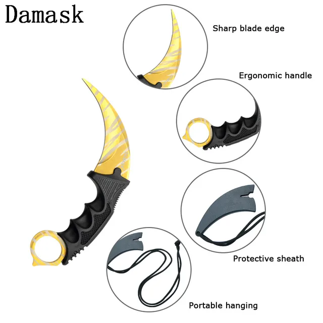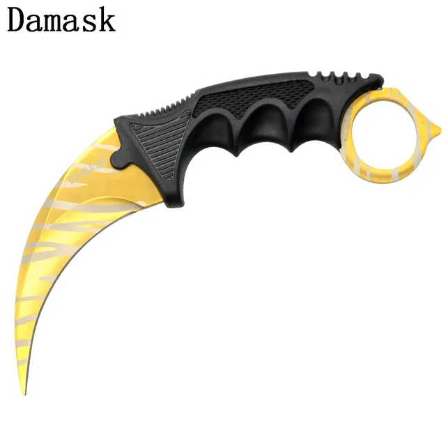 | [해외] 스테인레스 블레이드 골드 패턴 CSGO Karambit 야외 나이프 카운터 스트라이크 캠핑 나이프 생존 캠핑 도구 사냥 파트너 |