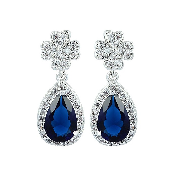 Riva Jewelry [RIVA Jewelry]블루 사파이어[CZ]18K 화이트 골드 도금 드롭 귀걸이 심플 모던 우아 [쥬얼리 파우치 무료]