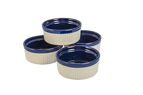 BIA Cordon Bleu Quatro 10-Ounce Soufflé Dish, Set of 4, Sand/Cobalt