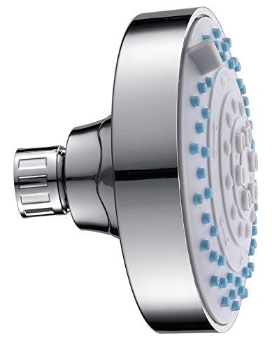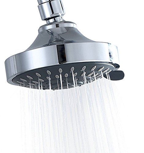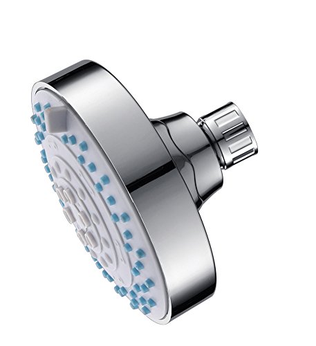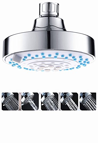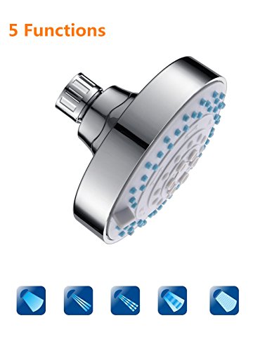 - KEY FEATURES: This shower head is flexible, water efficient, strong, eco-friendly, antimicrobial. It is made from sturdy plastic (ABS) and plated with chrome, more than capable of withstanding the standard 2.5 gpm. This Fixed shower head provides multi-function mode, eg, rainfall mode, massaging mode, low flow mode, spray mode and high flow mode showering experience