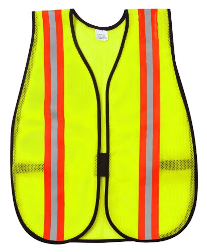 MCR Safety V200R Polyester Mesh General Purpose Safety Vest with 2-Inch Orange/Silver Reflective Stripe, Fluorescent Lime