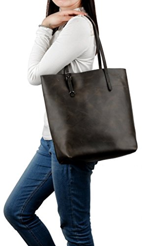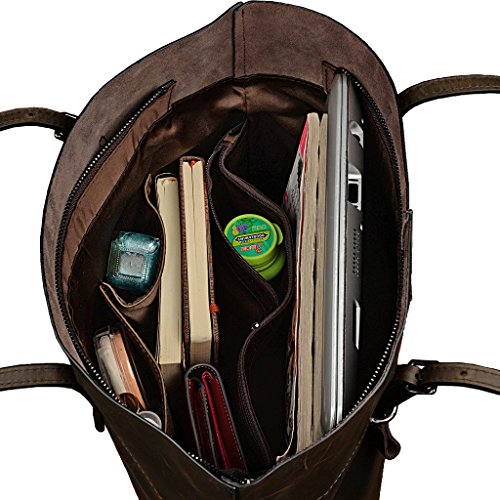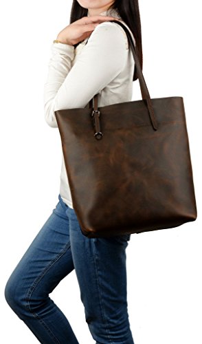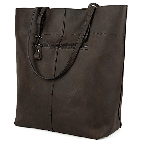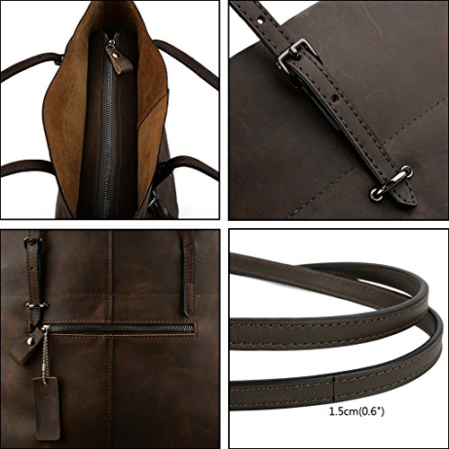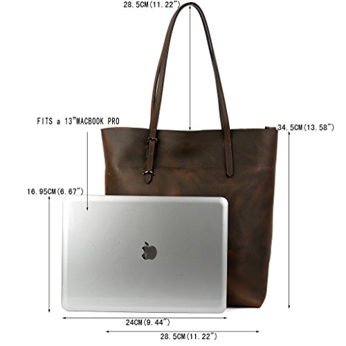 -. Brand : YALUXE -. Department : womens -. Feature : Crazy Horse Leather will be glossier with time. Just keep it away from water and light colored fabric. / Zipper top closure.This bag can hold 13" laptop, wallets, books and lots of things. / An outer zipped pocket for keys/phone.The inside has 2 main compartments with a center zippered piece, 2 open pockets and a zipped pocket. / Handle drop is 11", comfortable to wear on your shoulder.Lightweight and roomy for everyday use. / Dimensions: 13.58" H x 11.22"L x 5.7"W(fit up to 13" laptop).the weight is 2.16 lb. -. ProductGroup : Shoes -. ProductTypeName : HANDBAG -. Size : Large -. Title : YALUXE Women's Vintage Style Crazy Horse Leather Work Tote Shoulder Bag