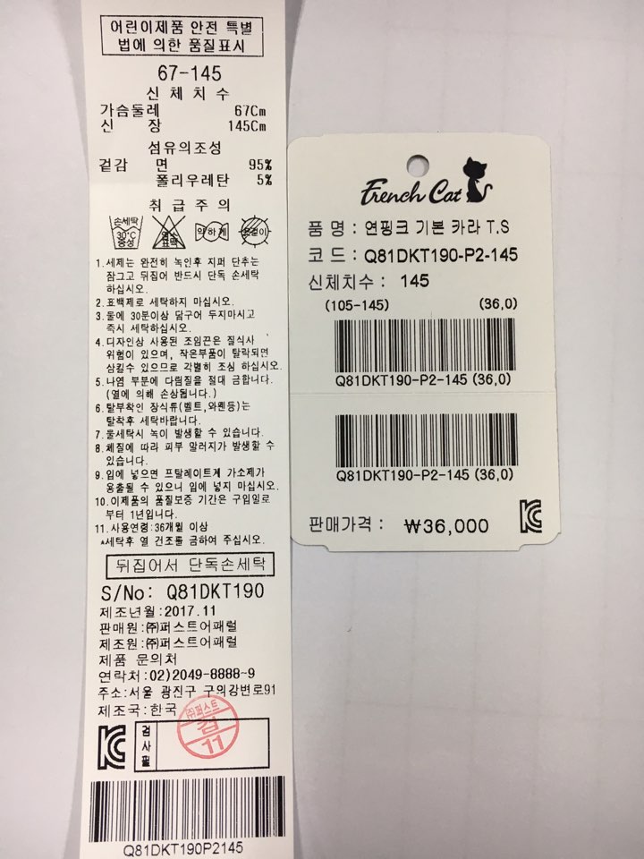 제조자 : 퍼스트어패럴