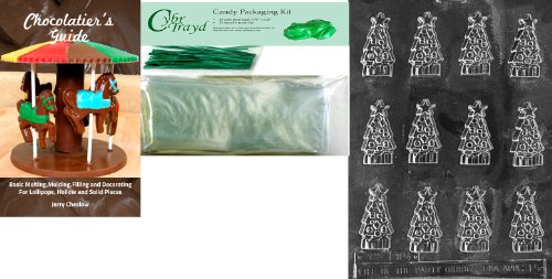 Cybrtrayd B.S. Tree with Star Chocolate Mold with Chocolatier's Bundle of 25 Cello Bags, 25 Green Twist Ties and Chocolatier's Guide