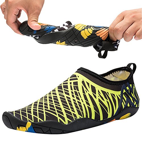 -. Feature : Extra Light / Breathable Upper / Soft Lining / COMFORTABLE: Take advantage of the flexible, light-weight style, more breathable and smooth, allows all toes to move and articulate without restraint. Keep your foot light, cool, dry and comfortable. / SAFETY WATER SHOES: Super High Traction rubber make foot more freedom, and that can well protect your barefoot from hurting during walking or playing in anywhere, anytime. / OCCASION -- Beach, swimming, pool, driving? weight training, sailing, boating, kayaking, windsurfing, cycling, jogging, walking, fishing, beach volleyball, lawn, and wake-boarding. Especially for family outings!