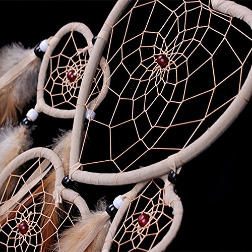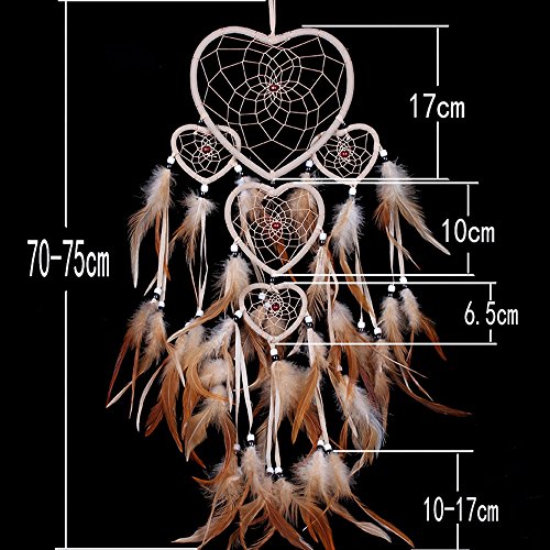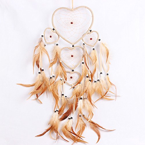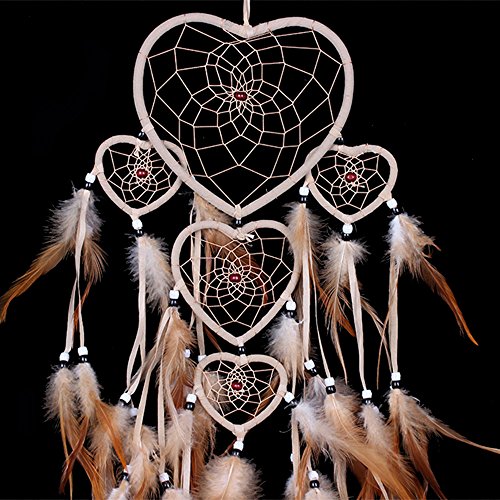 Large Handmade Dream Catcher Traditional Dreamcatcher Feather Wall Hanging Decoration Ornaments Five Hearts Beige