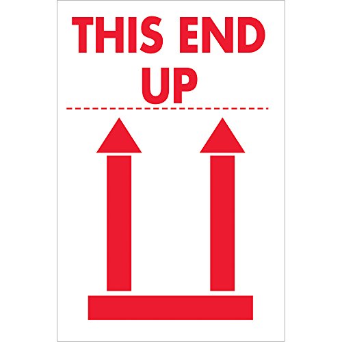 Tape Logic DL5154 Shipping and Handling Label, Legend "THIS END UP" with Graphic, 2" Length x 4" Width, Red on White (Roll of 500)