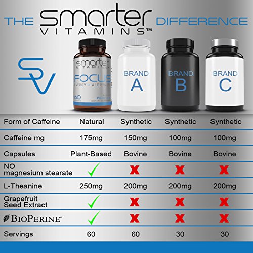 CAFFEINE PILL BENEFITS: 2-6 hours of clean smooth mental focus, energy and heightened mind alertness without the tingling feeling and the crash of energy drinks and coffee. Nootropic Stack for Cognitive Performance.
