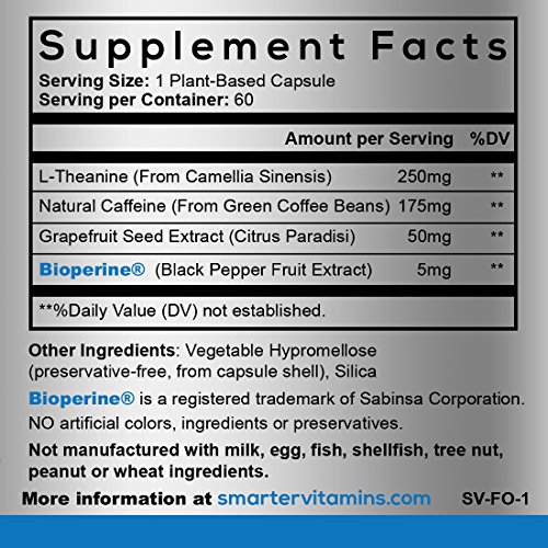 NATURAL ENERGY PILLS FOR MEN AND WOMEN: Green Coffee Bean Extract Harvested from CA Farms Provides a Natural Caffeine for Focus, Attention, Energy and Alertness, L Theanine Imported From Green Tea in India, GrapeFruit Seed Helps This Stack Last Longer and BioPerine® Black Pepper Helps Absorption (60 Plant-Based Energy Pills)