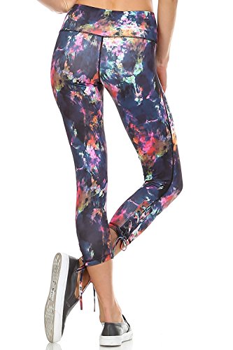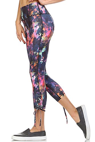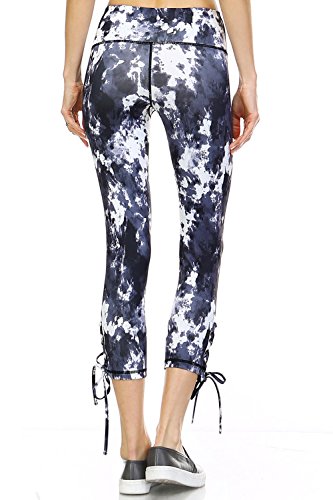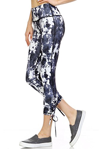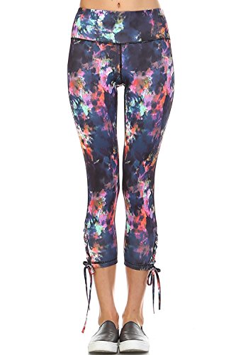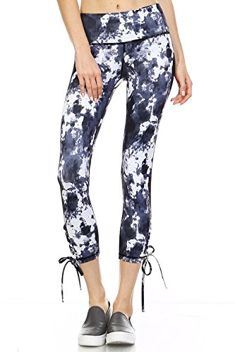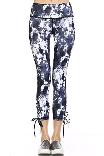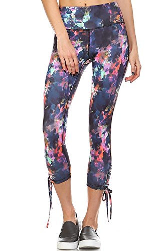Product DescriptionAthletic Capri Leggings With Criss Cross Tie Up at Side of Each Hem And a Print Design0