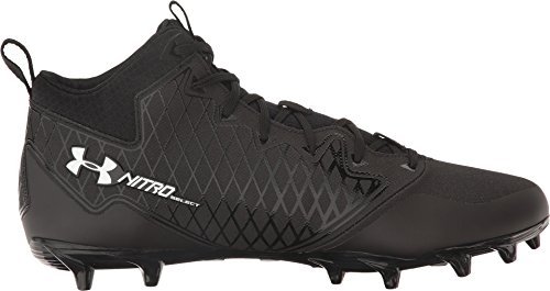 Binding : Apparel Product Description Take each step in stride and success on the fields with the Under Armour® UA Nitro Select Mid MC! This brand is a member of the Sustainable Apparel Coalition. Coated textile upper with pattern. Mid-top silhouette. Centralized lace-up closure for a snug, adjustable fit. Padded tongue and collar. Gusseted tongue for a locked-in, no-nonsense wear. Pull tab at tongue for easier on and off wear. UA ClutchFit™ technology wraps the foot and ankle like a lightweight second skin for enhanced support and a great fit. Soft fabric lining. Molded 4D foam footbed reduces cleat pressure. Molded TPU plate with cleats offer traction as well as quick cuts on synthetic surfaces. Imported. Measurements: Weight: 13 oz Product measurements were taken using size 12, width D - Medium. Please note that measurements may vary by size. 0