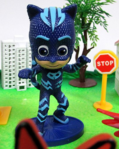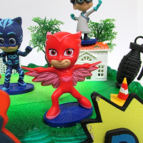 Super Hero PJ MASKS Deluxe Birthday Party Cake Topper Set Featuring Figures and Decorative Accessories
