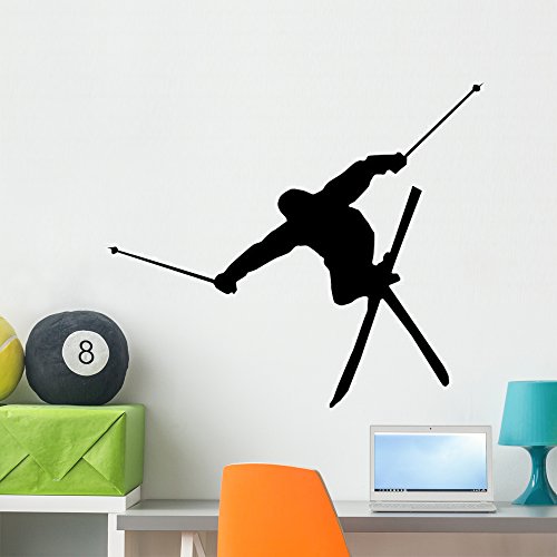 Skiing Silhouette Wall Decal by Wallmonkeys Peel and Stick Graphic (36 in W x 25 in H) WM175700