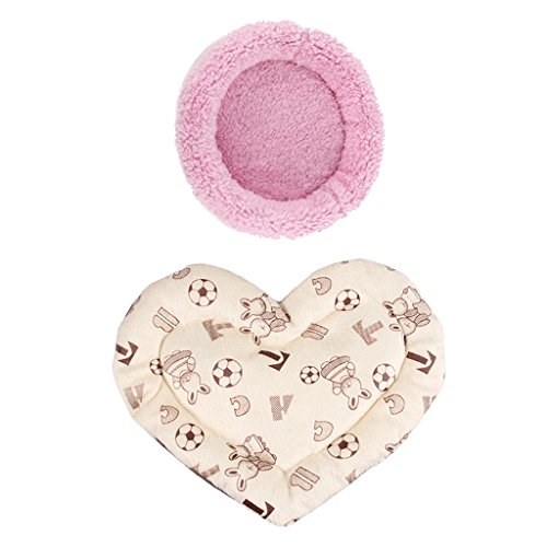 Specification: - Quantity: 2Pcs Round shape Hamster Bed - Material: PP Cotton - L: Inner Diameter: 14cm/5.51 inch, Outer Diameter: 22cm/8.66 inch Weight: 40g Heart shape Hamster Mat - Material:Fleece PP Cotton - Size: Approx. 20x16cm/ 7.87x6.30inch - Weight: 35g