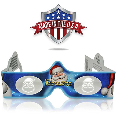 Studio : Trust Companies LLC Publisher : Trust Companies LLC Binding : Electronics Product Description Included in our variety 4 Pack is our snowflake, snowman, Santa and Reindeer designs. With our Holiday specs, sharply view Images in every point of light. For best usage. Stand 20 - 25 Feet away from any point of light. Holographic Images appear larger when farther away. While wearing these glasses look at Christmas tree lights, city lights or any bright distant point of light to see the magical message of Holiday Specs. These glasses are not intended for use over extended time, looking into the sun, performing physical activity, driving vehicles or operating machinery. Any other use of this product is not recommended. Our glasses are the perfect supplement for family gatherings or sending out Christmas party invitations and holiday Invites. 0