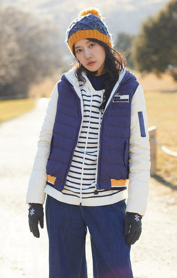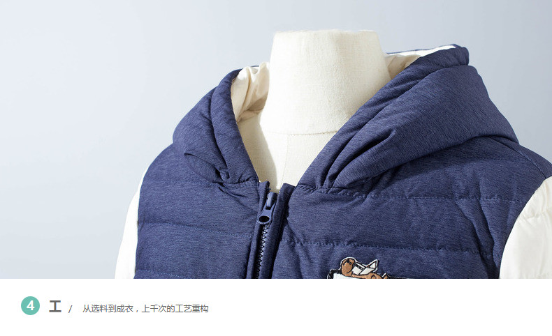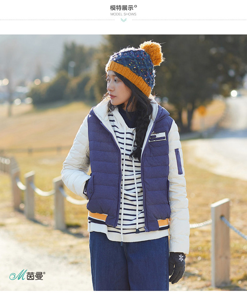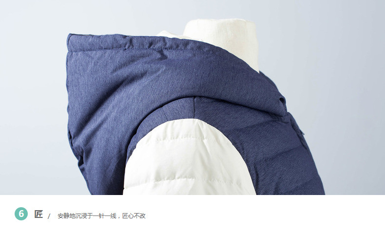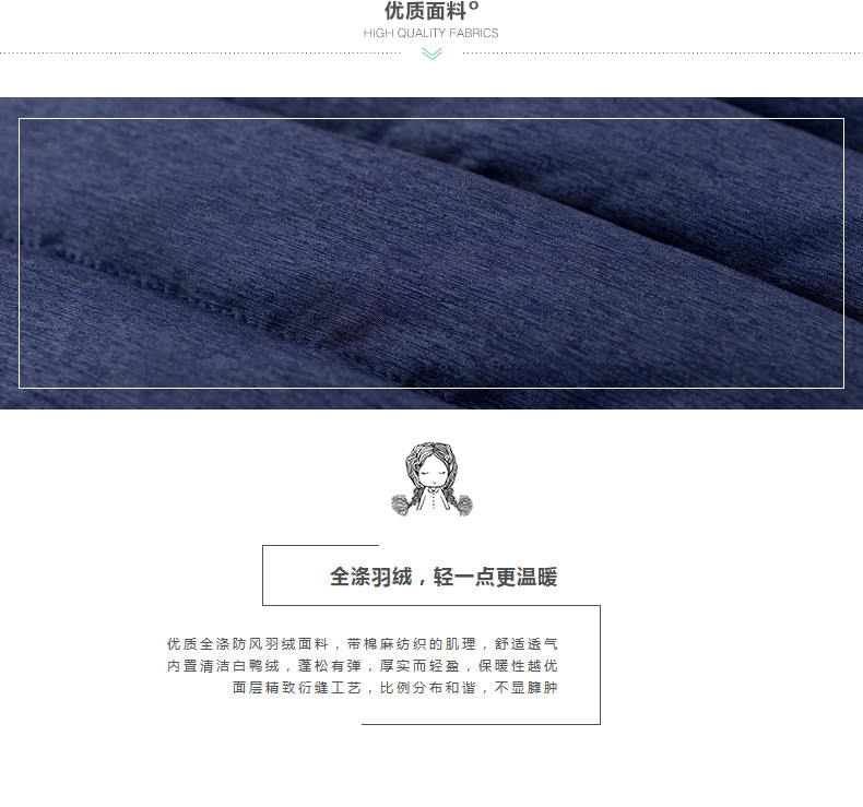 100%聚酯纤维 配料:52.6%聚酯纤维 47.4%锦纶 帽里:52.6%聚酯纤维 47.4%锦纶 里料:100%聚酯纤维 填充物:白鸭绒 含绒量:80% 充绒量:93.6g(S) 99.6g(M)105.6g(L)111.6g(XL)