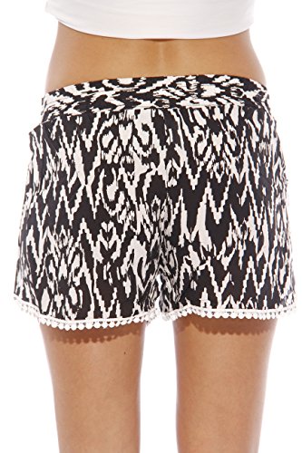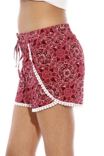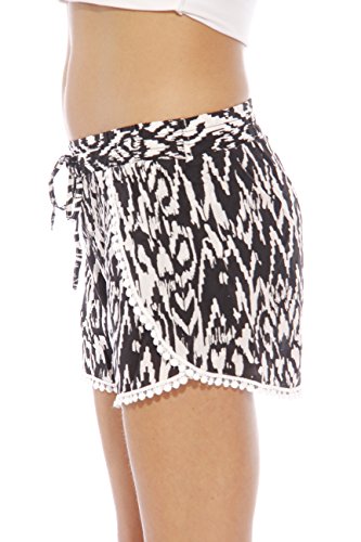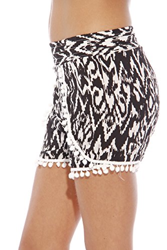 -. Binding : Apparel -. Brand : Just Love -. Department : womens -. Feature : SUMMER IS HERE! - Complete your look with these stylish shorts / STAY COOL - The lightweight rayon fabric allows for maximum comfort on those hot summer days / A MUST HAVE - Wear with a basic tee to achieve the perfect bohemian look / UNIQUE STYLE - Choose from a variety of prints with fringe, lace and tassels trims / EASY CARE - These women shorts are machine washable -. ProductGroup : Apparel -. ProductTypeName : SHORTS -. Title : Just Love High Waisted Women Shorts - Summer Pom Pom Beach Shorts