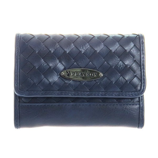 プレイボーイ PLAYBOY 編み込み メンズ 二つ折り 短財布 P33061 ネイビー