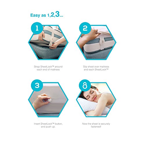 SheetLock Bed Sheet Fastener Set Premium Bed Sheet Holders To Keep Sheets Tight Sheet Straps Grippers For all bed types Best HIDDEN Bed Sheet Suspenders "LARGE" For Full, Queen, & King Bedding Sets