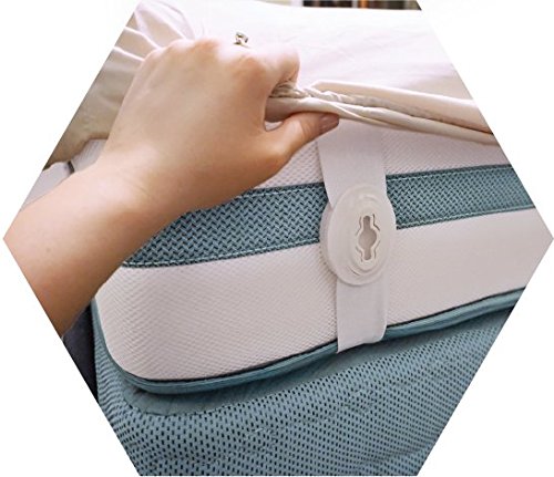 ■ NO NEED TO LIFT HEAVY MATTRESSES! Unlike most sheet grippers on the market, SheetLock sheet corner holders do not require lifting your mattress every time you change your sheets! Install them in no time by attaching the elastic bands horizontally at the HEAD and the FOOT of your bed, put the sheet OVER the sheet straps and pin them down with the button! An ONE-HAND installation, ensuring perfectly tight sheets in a matter of seconds!