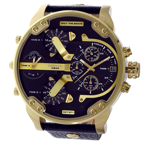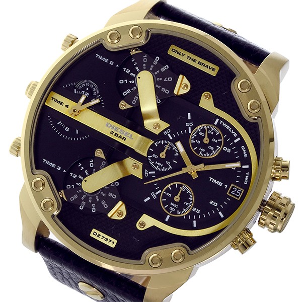 ディーゼル DIESEL ミスターダディ Mr. Daddy クロノグラフ 4タイム クオーツ メンズ ウォッチ 時計 ブラック  商品仕様:(約)H57×W57×D14mm(ラグ、リューズは除く)、重さ(約)139g、腕周り最大(約)19.5cm、最小(約)14.5cm ステンレス(ケース)、レザー(ベルト) 専用BOX、保証書、取扱説明書