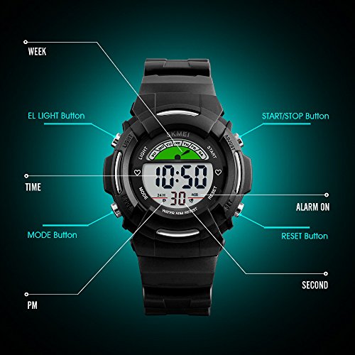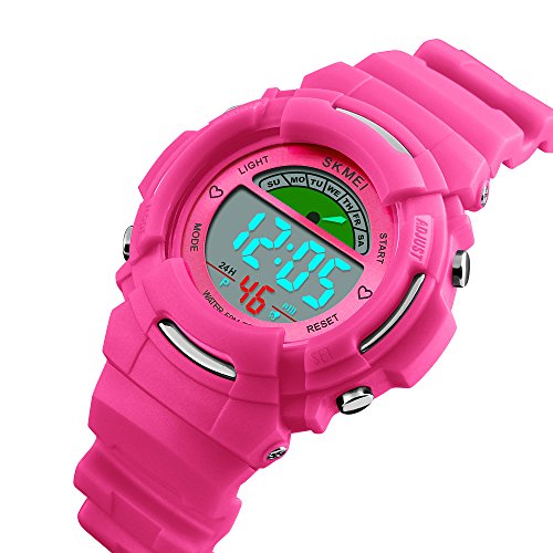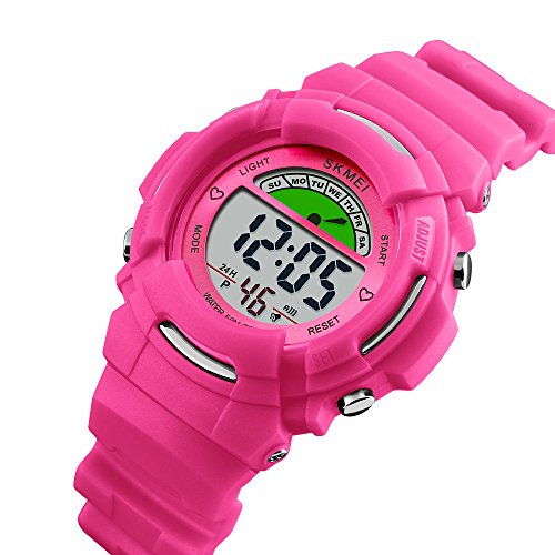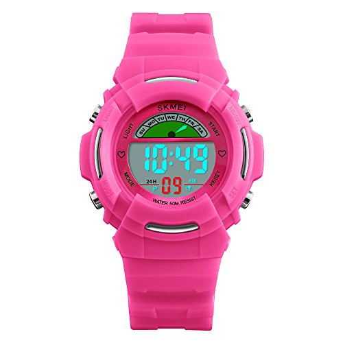 Fanmis Children Girls Sporty Design Multifunctional Digital 50M Waterproof Alarm Stopwatch Backlight Wrist Watch Pink