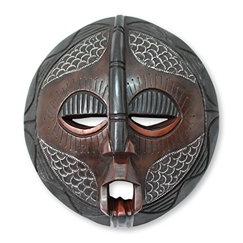 NOVICA Decorative Peace And Calm Sese Wood and Aluminum Mask, Brown, 'Peace Talker'