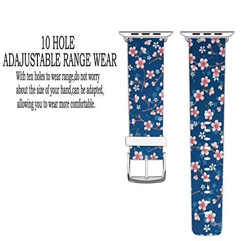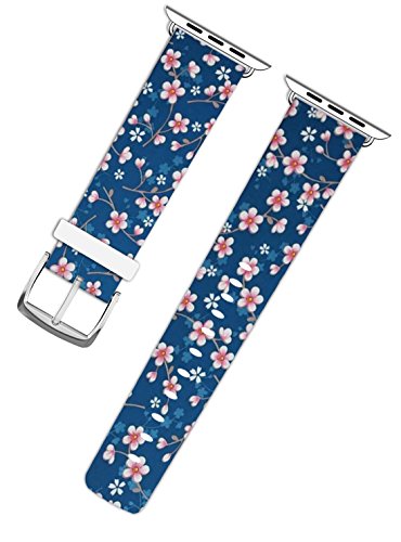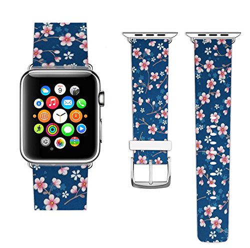 Band for Iwatch 38mm, Replacement Band Genuine Leather Iwatch Strap With Silver Metal Clasp For for Apple Watch Series 1 Series 2 38mm - Little Pink Floral