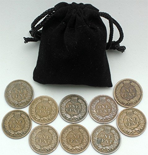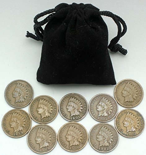 10 Varies Indian head Cents Dates 1880-1909 Good to Very Good Comes in Velvet bag Great Starter Set Good